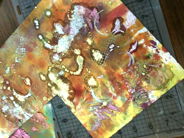Here's the first background made on a thin Japanese paper. It's like tissue paper but a bit thicker.
