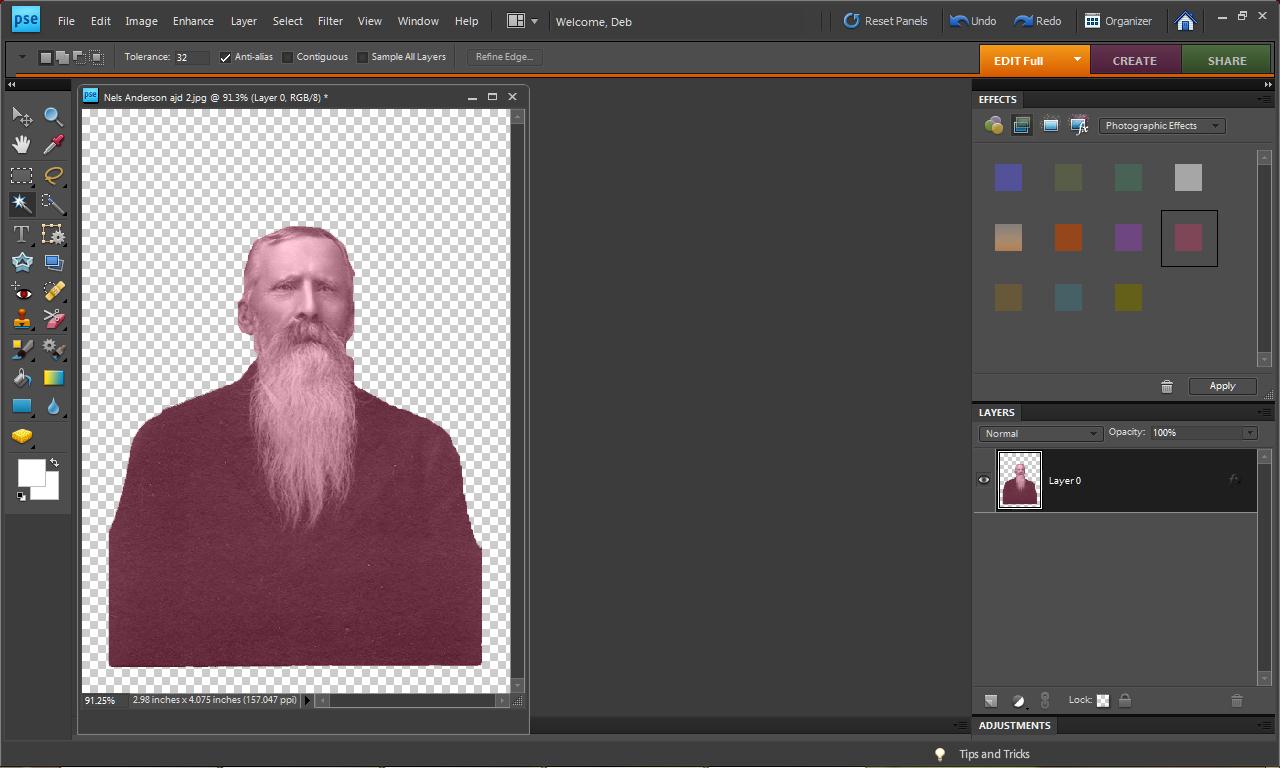 But I wanted to try colorizing Nels for this project. (I removed the background but it's not necessary.) Under WINDOWS open the EFFECTS - PHOTOGRAPHIC EFFECTS. Click on one of the colors and drag to your photo. Ctrl+z will reverse the colorization. When you're happy -- SAVE IT!So, let’s be honest here…I love Nels’ beard but honestly he looks a bit like a garden gnome. (am I right?) So I paired him with Retro Art Café’s Vintage Botanical Images Collage Sheet by Debrina Pratt - DP188. (I think he's approve of being a gnome...he was a farmer after all).